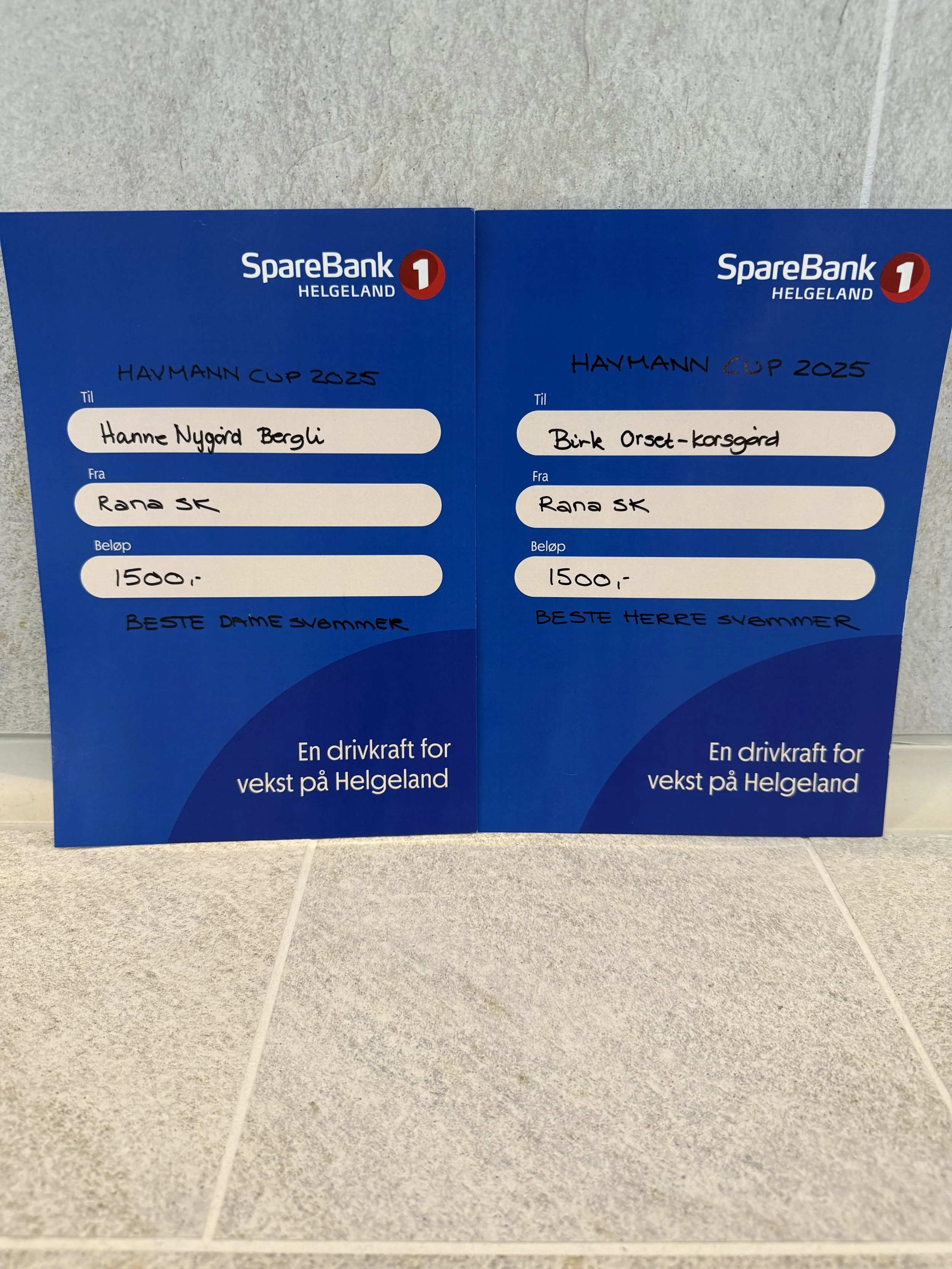 Det leveres også ut premie for beste dame svømmer og beste herre svømmer, høyest poengsum av 4 øvelser. Her er det Hanne og Birk fra Bodø SK som får denne utmerkelsen.