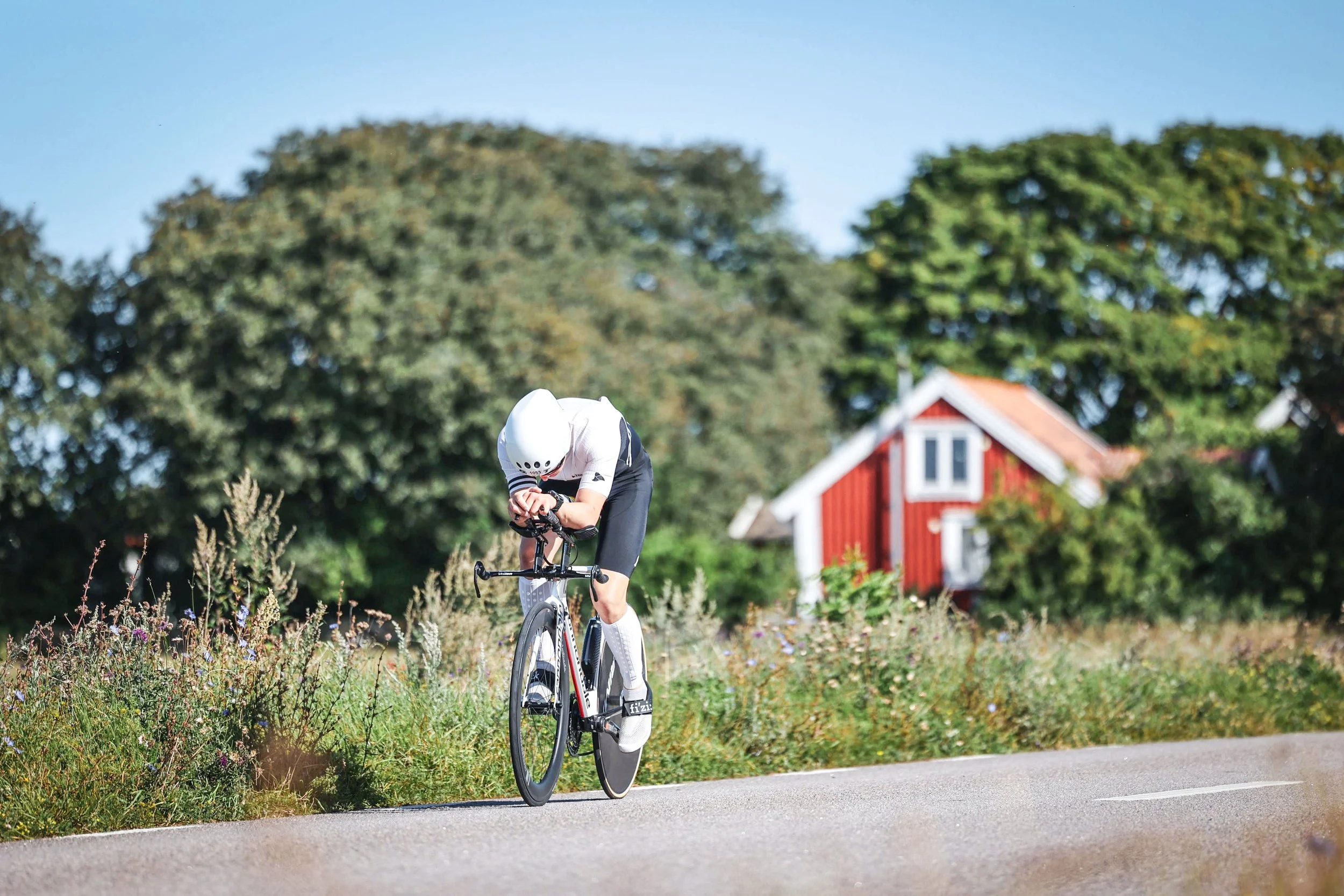 Vidre inn i T1 som det heter. (Skiftesonen) Var det bare å få av våtdrakten og kneppe på hjelmen og komme seg ut på sykkel. Sykkeletappen gikk fort, der var det mye forbikjøringer som gjorde at tiden fløy. Måtte og passe på å holde en avstand på ca. 12m til sykkelisten foran. Hadde fokus på å få i meg nokk næring underveis da dette er ekstremt viktig i så lange konkurranser.