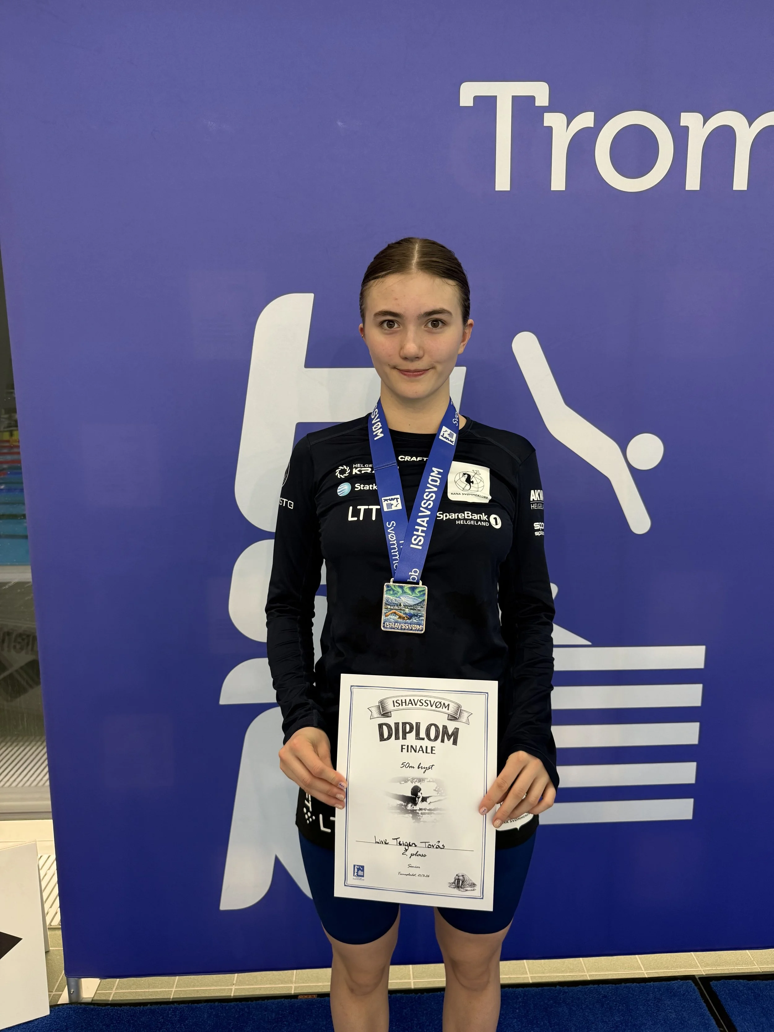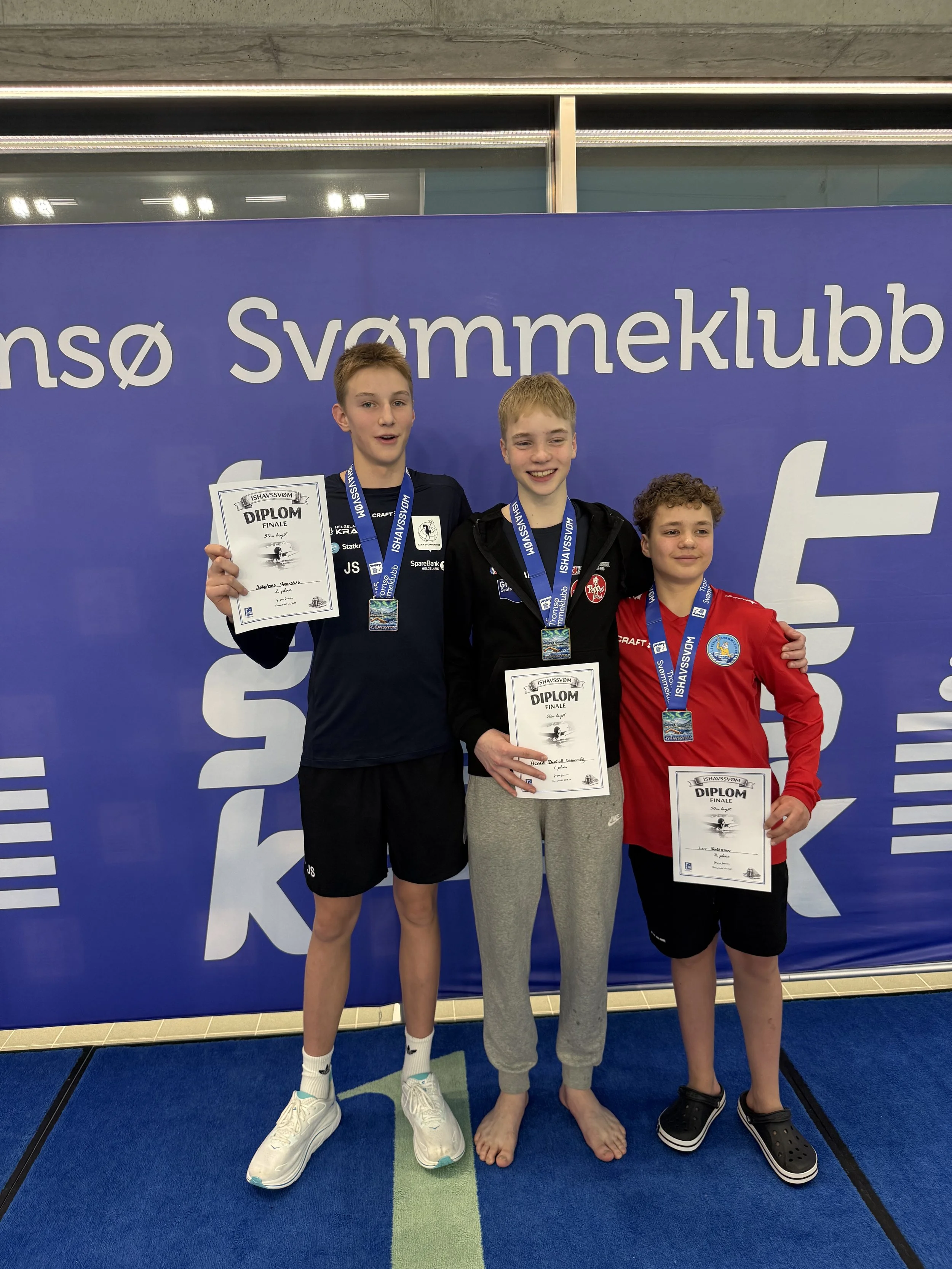 Lørdag starter med 50 bryst og 50 fri forsøk, her svømmer Live og Jokubas seg til hver sin finale på 50 bryst, begge tar 2.plassen i henholdsvis eldre junior/senior og yngre junior. I finalen så greier Jokubas BSF kravet, mens Live tar NM jr kravet på 50 bryst allerede i forsøket. Live forbedrer også sin egen klubbrekord på 50 bryst, og ny tid er 35,75. Vi gratulerer begge to med gode prestasjoner. Adrian er også i bra langbaneform, lørdag tar han BSF kravet på 50 fri og 200 IM, gratulerer til han også.