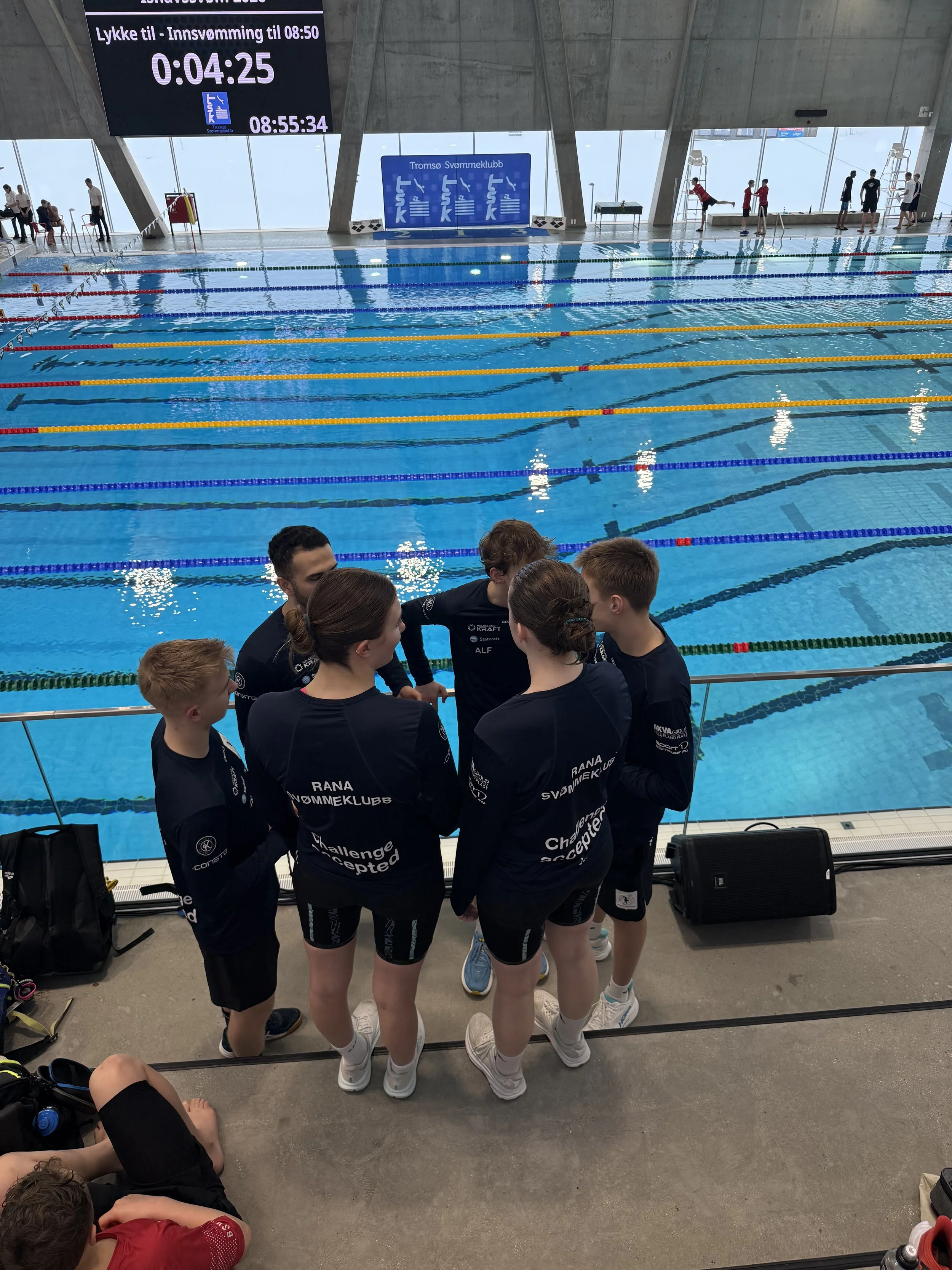 Lørdag ettermiddag stiller vi også til start på 4x50m fri mix, her svømmer laget seg inn til en sterk 5. plass blant 24 startende lag, og setter standarden for klubbrekorden på denne distansen. Staffettlaget består av Adrian, Jokubas, Anna og Live.